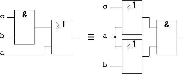 Abb. 1.24: Distributivgesetz auf Gatterebene.