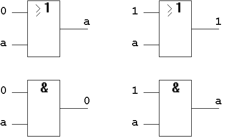 Abb. 1.27: Null- und Eins-Gesetz auf Gatterebene.