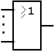 Buffer ohne Verstärkung am Ausgang (buffer without specially amplified output) Der Ausgang befindet sich nur dann im 1-Zustand, wenn sich der Eingang im 1-Zustand befindet. |