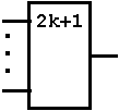 (EVEN element, EVEN-parity element) Der Ausgang befindet sich nur dann im 1-Zustand, wenn sich eine gerade Anzahl von Eingängen (0,2,4, usw.) im 1-Zustand befindet. |