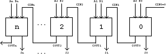 Kettenstruktur eines n-stelligen Volladdierers (ripple adder):