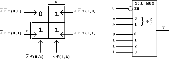 Abb. 2.49: Funktionsrealisierung mittels Multiplexer.