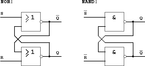 Abb. 4.17: NOR- und NAND-Realisierung des RS-Flipflops.