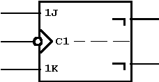 | Takt-Eingang mit Flankensteuerung. Die Variablen an den Eingängen, die von C abhängen, werden beim 1-0-Übergang wirksam (negative Flanke). | ![]() |