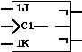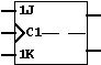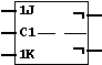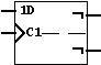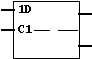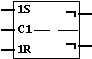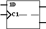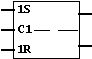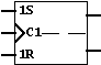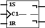 | Takt-Eingang mit Flankensteuerung. Die Variablen an den Eingängen, die von C abhängen, werden beim 0-1-Übergang wirksam (positive Flanke). | ![]() |