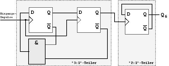 Abb. 7.22: Quasi-asynchroner 23-Teiler.