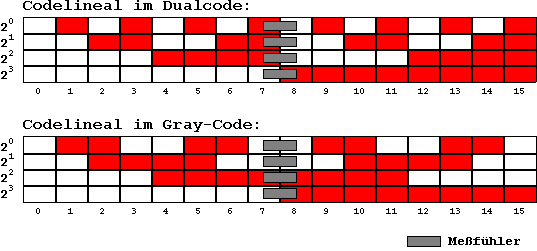 Zum Messen von Längen können Meßlineale eingesetzt werden, die im Prinzip den bereits eingeführten Codelinealen entsprechen. Winkel können mit Hilfe von ähnlich aufgebauten Winkelgebern bestimmt werden.