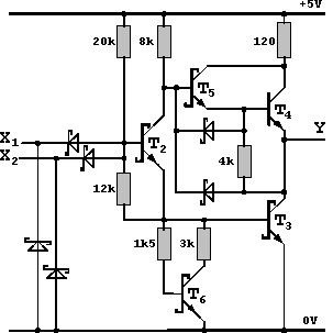 sperrt, so daß der Ausgang y auf 5V-Potential liegt.